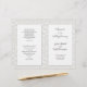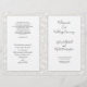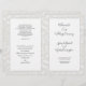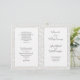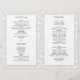Modèle du programme de mariage catholique plié avec arrière - plan à motifs. Ce programme à l'allure superposée contient un design arrière - plan de feuilles blancs et de petites fleurs, sur gris clair. Des panneaux blancs solides tiennent le texte gris foncé dans un script manuscrit moderne et des polices imprimées. Chaque page dispose de beaucoup de texte, sur quatre "pages", pour accueillir une cérémonie en cause. La dernière page (au dos du programme lorsqu'elle est pliée) comprend une section pour les écritures (exemple : "L'amour est patient, l'amour est gentil" de 1 Corinthiens) et un message de la mariée et du marié. Les programmes ont des options sur papier et doivent être pliés après l'achat.