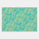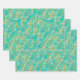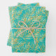 Trois feuilles de papier d'emballage présentent des frondes tropicales de palmiers d'or sur un arrière - plan turquoise (ou toute couleur que vous choisissez). Ruban et sacs cadeaux dans notre magasin.