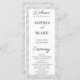 Présentant notre programme de mariage moderne et élégant, avec des éléments botaniques et un design soigné et propre. La bordure gris clair avec la coordination de la verdure et du feuillage crée un look sophistiqué qui conviendra parfaitement à tout mariage. Que vous cherchiez quelque chose de simple, minimaliste, moderne, boho ou coloré, ce programme saura vous plaire. Le devant du programme comprend tous les détails essentiels, y compris les noms du couple, la date du mariage, la ville et l'état, ainsi que l'ordre de cérémonie. Le texte principal est dans une simple police de caractères noire, tandis que les mots "Welcome", "Ceremony" et "Wedding Party" sont dans une police de caractères assez noire et moderne. Les noms du couple sont dans une police simple en noir gras avec espacement des lettres, ce qui les distingue et ajoute une touche d'élégance supplémentaire au design. Au verso du programme, vous trouverez la liste de la fête de mariage, ce qui permet à vos invités d'identifier facilement toutes les personnes impliquées dans la cérémonie. Ce programme de mariage est parfait pour ceux qui veulent un design moderne et sophistiqué qui est facile à lire et qui a l'air superbe dans n'importe quel cadre. Dans l'ensemble, notre programme de mariage moderne et élégant est le moyen parfait de fournir à vos invités tous les détails nécessaires tout en ajoutant une touche de sophistication et de style à votre journée spéciale.
