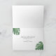 Cette carte de remerciement tendance et élégante présente des feuilles de monstera, de figuier lyré et de pothos en aquarelle verte sur un fond simple rose et blanc. Un script manuscrit moderne en vert est également présent.
