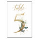 Jolie carte de numéro de table avec un motif botanique - une illustration aquarelle de feuilles vertes et dorées. Table 5. Veuillez vérifier tous les numéros disponibles