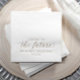 Serviettes de fiançailles : Élégantes et modernes, ces serviettes de cocktails "Cheers to the Future" apportent une touche élégante à votre fiançailles ou douche nuptiale. Le design unique présente une typographie raffinée avec une finition métallique qui ajoute une sophistication subtile à chaque toast. Personnalisées avec The Future Mr & Mrs ou The Future Mrs, ainsi qu'un nom et une date, ces serviettes allient simplicité et luxe pour une célébration qui se sent chic et mémorable sans effort.