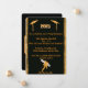 Faire-part de graduation en noir et or avec garniture côté or, casquette et diplôme. Personnalisez toutes les légendes.