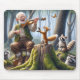An elderly man joyfully plays the fiddle in a forest, surrounded by animated animals, including a fox, raccoons, and a butterfly