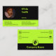 Un entrepreneur professionnel petit carte de visite en vert et noir chaux vive offre des espaces réservés sous la forme d'un logo personnalisé rond et nom d'entreprise avec des symboles réseau personnalisés pour se connecter et socialiser. Sur le côté avant se trouvent des espaces réservés pour une photo ronde personnalisée avec des champs de texte personnalisés qui incluent le nom, les coordonnées et l'adresse. Il est possible de personnaliser davantage la police, la taille de police, la couleur de police et la couleur de l'arrière - plan et des formes. Si vous avez besoin d'aide ou souhaitez discuter d'un design personnalisé, contactez https://t.me/KBMD3signs_chat.
