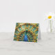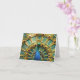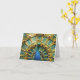 Le paon glorieux de majolique se pavane sa substance sur cette carte de note dramatique.