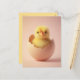 Ein flauschiger, gelber Küken mit einem zauberhaft heftigen Ausdruck, der aus einer geknackten Eierschale vor einem weichen pastellfarbenen Hintergrund flüchtige Blick macht. Ideal für Osterthemen, Babyprodukte oder spielerisches Branding.