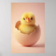 Ein flauschiger, gelber Küken mit einem zauberhaft heftigen Ausdruck, der aus einer geknackten Eierschale vor einem weichen pastellfarbenen Hintergrund flüchtige Blick macht. Ideal für Osterthemen, Babyprodukte oder spielerisches Branding.
