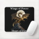 Ein erbitterter goldener Drache, der mit dem Vollmond im Hintergrund aufsteht. Ein Slogan "Flügel des Powers, Feuerherz" umschließt das Bild. Ein tolles Mauspad für einen Mann oder eine Frau, der Fantasy genießt. Enthält generativen Inhalt.