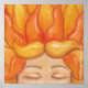 Ein feuriges, rot gekleidetes kleines Mädchen mit geschlossenen Augen ist ein leidenschaftlicher Träumer. Ihr Haar sieht aus wie Flammen. Originelles Design von Christie Black von Kreationen aus dem Herzen.