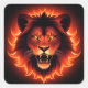 Fiery Lion Gesicht mit leuchtendem Mane Quadratischer Aufkleber