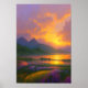 Fiery Sunset, schöner See mit grünen Banks Poster