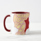 Zwei feurige Damen zieren diese Tasse. Sie sind ein künstlerisches Kreuz zwischen Gibson Girl und den Stilen von Peter Max.