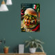 Beginnen Sie Ihren Geschmack mit diesem feurigen Fiesta Firecracker Burger. Eine gewürzte Rindfleischpartie, gegrillt bis zur Perfektion, wird mit geschmolzenem Oaxaca-Käse, gebratenen Jalapeños, einem großzügigen Abstrich aus Chipotelleder Mayo und frischen Avocado-Scheiben überragt. Alle sind in einen Maisknochen eingebettet. Eine kleine mexikanische Fahne sorgt für eine festliche Touch, während ein verwackelter Hintergrund aus Chili-Paprikaschoten und frischem Ciclantro das mexikanische kulinarische Fest abrunden.