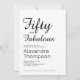 Fifty and Fabulous script minimal black modern 50th birthday invitation that you can personalize and send out for your fiftieth birthday party celebration. The words "Fifty and Fabulous" are set using popular script font typography. The text colors can be changed using the edit menu.