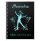 Un carnet inspirant pour un cadeau de patinage artistique pour fille - pour créer un journal, prendre des notes ou dessiner. Couleur : bleu glacé sur noir arrière - plan Design : Doodle en forme d'étoile + silhouette d'un patineur artistique + personnalisez avec le nom du patineur + "Star on the ice" ou un message personnalisé. Conçu par iceskatingpassion.com. Autres couleurs dans la boutique
