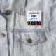 Im Nachhinein würde ich eher den Button mit Magnet bestellen... damit dieser bei jeder Kleidung angebracht werden kann. Sehr gute Bildqualität