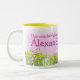 Fun girl dans un champ chasse les oiseaux personnalisés nom mug. Personnalisez avec le nom de vos filles. Voici l'exemple : Notre merveilleuse fille Alexandra.