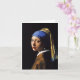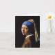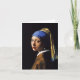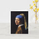 Fille de Johannes Vermeer avec une carte de note de boucle d'oreille de perle. Peinture à l'huile sur la toile circa 1665. A souvent appelé la Mona Lisa du nord, fille avec une boucle d'oreille de perle est la peinture la plus célèbre de Johannes Vermeer. La boucle d'oreille de perle sert de point focal de la référence duquel les trois sphères différentes de couleur de la peinture émanent. Le châle bleu et jaune de foulard et de moutarde sont également abilement accentués par l'intellectuel rigide, les blancs des yeux, et les lèvres rouges humides. Un grand cadeau pour des fans de Johannes Vermeer, peinture baroque, et art. néerlandais.