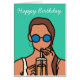 Graphisme coloré funky d'une adolescente buvant du thé aux bulles. Design moderne de couleur bleu vif cool et tendance.