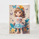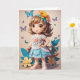 Joli personnage de fille, debout à l'extérieur avec des papillons et des fleurs en scène. Videz à l'intérieur pour votre message personnel, et vous pouvez ajouter votre propre salutation sur le devant.