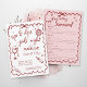 Organisez une soirée entre filles élégante et amusante avec cette invitation carte de notation de dégustation de vin Winery Girls Night Out. Conçue pour les amateurs de vin, elle présente une mise en page propre et moderne avec un accent rouge audacieux, ce qui la rend parfaite pour les soirées d'anniversaire, les soirées de bachelorette ou les réunions décontractées au vignoble. Le recto invite vos invités à l'événement, tandis que le verso fournit une carte de notation de dégustation de vin pour que chacun puisse évaluer et enregistrer ses vins préférés tout au long de la soirée.