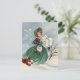 Illustration vintage montrant une petite fille blonde mignonne en Green Coat Mailing Cartes de Noël