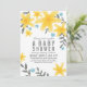 Customisez cet élégant Baby shower moderne clair Invitation avec de jolies fleurs tropicales jaunes blanches sur un arrière - plan blanc, parfait pour une petite fille. Conçu comme un modèle pour une personnalisation facile. Les Stickers Favor Merci correspondants se trouvent ici :