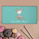 Le tapis de bureau en gros est une fille avec des petits pains à cheveux fixés avec des aiguilles de tricot enroulant une boule de fil. Personnalisable "Life is better with yarn" texte blanc sur arrière - plan turquoise