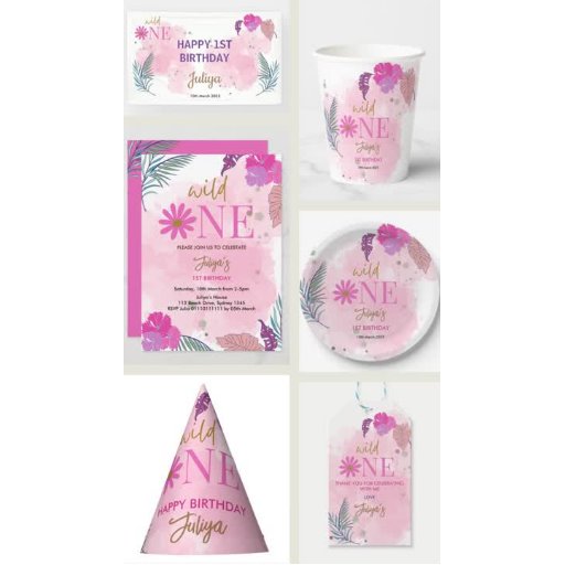 fleur sauvage feuille tropicale bébé fille 1st Birthday Banner est un joli design de couleur rose pour les petites filles