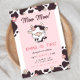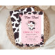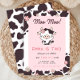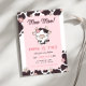 Préparez-vous à fêter avec notre Invitation pour l'anniversaire de la vache! Montrant une vache douce sur un arrière - plan rose, cette invitation est accentuée de taches de vache et de marguerites. Le texte personnalisable vous permet de personnaliser tous les détails de la fête, ce qui en fait le choix idéal pour la journée spéciale de votre petit.