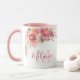 Lovely Girly Blush Pink et Coral Roses personnalisée Nom Monogram mug. Design féminin mignon, en aquarelle rose, corail ou pêche couleur arrangement floral avec feuillage vert sur blanc. Monogramme de fonction et modèle de nom de script manuscrit. Il est facile d'ajouter votre nom et votre monogramme. Grand cadeau romantique personnalisé pour les filles et les femmes pour l'anniversaire ou toute occasion.