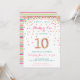 Fêtez l'anniversaire de votre 10 ans avec de l'or coloré, du rose, de la menthe et des confettis turquoises sur ces invitations à l'anniversaire de votre 10e anniversaire ! Avec les détails de la fête de votre fille et un "10" en confetti. Titre : "HOORAY, AMEN !" Bandes assorties jolies et colorées sur le dos. Ce design adorable est super mignon et girly.