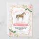 Une invitation à l'anniversaire de cheval doux en corail, vert et or. Cette mignonne invitation est une belle façon d'invitation les invités de votre petit à sa fête. Le design se compose d'un cheval aquarelle, deux arrangements floraux aquarelle, un cadre et un faux motif de polka à parties scintillant dorée sur un arrière - plan rayé de corail et crème. J'ai aussi inclus une bannière d'aquarelle de corail dans le design. L'invitation à l'anniversaire de cheval floral de cette fille est prête à être personnalisée.