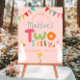 Cette jolie et fantaisie filles 2e anniversaire design de signe d'accueil avec deux oies idiotes avec casquettes de fête, et peut être personnalisée avec un nom de vos filles. L'affiche est également ornée d'un arrière - plan rose, et d'un bunting coloré pour la fête. Le design de ferme parfait pour le deuxième anniversaire de votre petit!