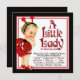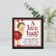Ladybug première invitation de fête d'anniversaire avec adorable fille de cheveux blonde portant une tenue de coccinelle rouge et noir sur un joli arrière - plan rouge et noir avec texte de coccinelle. Vous pouvez facilement customiser cette adorable invitation de premier anniversaire de ladybug rouge et noir pour votre événement en ajoutant simplement vos détails dans le style de police et la couleur que vous préférez.