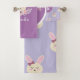 Cet ensemble de serviettes super mignonnes et girly dispose de motif à visage lapin dormant et violet arrière - plan lilas. Il a également un nom et un texte monogramme personnalisables. Il s'agit d'un grand ajout à la collection de ceintures de votre enfant. Ce sera un cadeau de baby shower ou un cadeau de Noël pour vos petits ! Pour un design plus similaire, visitez le magasin.