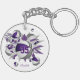 Ce porte - clé amusant à thème de basket présente une "explosion" de boules de basket violettes, grises et blanches de tailles variées et des formes d'étoiles grises et violettes - l'étoile violette a un petit motif de pois blancs - personnaliser avec le nom de l'athlète et numéro de maillot, avant et arrière - par katz_d_zynes