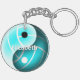 Ce porte - clé de volleyball yin et yang présente des éléments semi-transparents de yin et de yang qui révèlent un volleyball minimaliste (représenté uniquement par ses coutures en blanc) et un arrière - plan turquoise - personnaliser avec son nom - par katz_d_zynes
