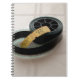 Gegen einen weißen Hintergrund sitzt eine Spule des Filmes mit ein paar Gelb, zulassen ein, Filmkarten. Dieses Notizbuch ist völlig kundengerecht.