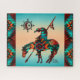 Profitez de cette fin unique "One of a Genre" du Puzzle Trail! Il comprend une extrémité amérindienne du sentier Indian et Horse and Sun sur un Arrière - plan turquoise et orange Sunset...Entouré d'une frontière en Turquoise, Orange & Black! Design D'Art Original Par L'Artiste Kerry Miller.