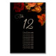 Fine art dark moody floral wedding table numbers seating chart card.
