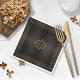 Filigree Rahmen, Rahmen und Ornamente, die in Imitaten mit Goldfolie strukturiert sind, schmücken die Teile dieser eleganten Hochzeitssuite. Diese einfache, aber elegante Papierserviette verfügt über einen verzierten Rahmen und einen Scrollwork-Rahmen für Ihre Initialen und Hochzeitstag. Wählen Sie eine beliebige Hintergrundfarbe aus oder verließ Sie die von uns gelieferte Holzkohle, Textureffekt. Fügen Sie Ihre Initialen und das Hochzeitsdatum mit der bereitgestellten Vorlage hinzu. Suchen Sie ID871 um die komplette Hochzeitskollektion und andere Farbauswahl für dieses Design zu sehen.