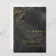 Ein Aquarellhintergrund in Farbtönen von Holzkohle grau bis schwarz wird durch ein abstrakte von edlen Goldlinien und glitzernde Lichteffekte ergänzt, um die Teile dieser wunderschönen Hochzeitssuite zu kreieren. Die hier gezeigte Hochzeitskarte "Menu" zeichnet sich durch elegante Kalligraphie und ein dezent gestaltetes Layout aus, das für visuelle Anziehungskraft sorgt. Fügen Sie einfach Ihre eigenen Initialen, das Hochzeitsdatum und die Menüauswahl mit der bereitgestellten Vorlage hinzu. Suchen Sie ID867, um weitere Teile und Farboptionen für dieses Set zu sehen.