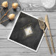 Ein Aquarellhintergrund in Farbtönen von Holzkohle grau bis schwarz wird durch ein abstrakte von edlen Goldlinien und glitzernde Lichteffekte ergänzt, um die Teile dieser wunderschönen Hochzeitssuite zu kreieren. Die hier gezeigte Serviette aus Hochzeitszettel weist auch einen Farbverlauf auf, einen diamantförmigen Rahmen, um die Initialen der Braut und des Bräutigams und das Hochzeitsdatum zu halten. Suchen Sie ID867, um weitere Teile und Farboptionen für dieses Set zu sehen.