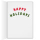 Foto eines dekorierten Lebkuchenkochs, rotes Kleid mit grünen Weihnachtsbäumen, lustiges Gesicht für die Ferien verziert! Inside card liest, GLÜCKLICHE URLAUB