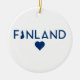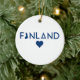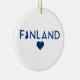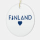 Dieses Ornament weist die finnischen Nationalfarben auf, mit einer Landkarte und einem Herz im Inneren! Das Design ist auf einer Seite des Ornaments bedruckt.