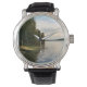 Uhr, Vintage Männeruhr mit schwarzem Lederarmband
