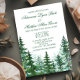 Hochzeitsfeiern mit Bäumen mit schönem Aquarellwald von Tannenbäumen auf einem eigenen Farbhintergrund. Diese wunderschönen rustikalen Tannenbaumhochzeiten sind einfach an Ihre Veranstaltung angepasst, indem Sie einfach Ihre Details in den Schriftart Stil und Wortlaut Ihrer Wahl.