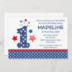 Niedlichen personalisierten 4. Juli 1. Geburtstag Design mit einem großen blauen Nummer eins Feuermesser gefüllt mit roten und weißen Sternen und Sternenstaub. Anpassbarer Text. Perfekt für den 4. Juli ersten Geburtstag! PinkInkArt Original!